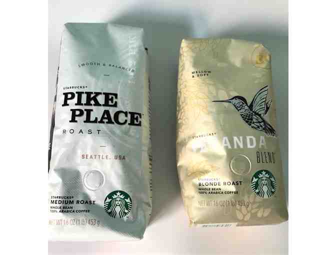 Starbucks Whole Bean 16 oz bag each of Veranda and Pikes Place Roast Coffee