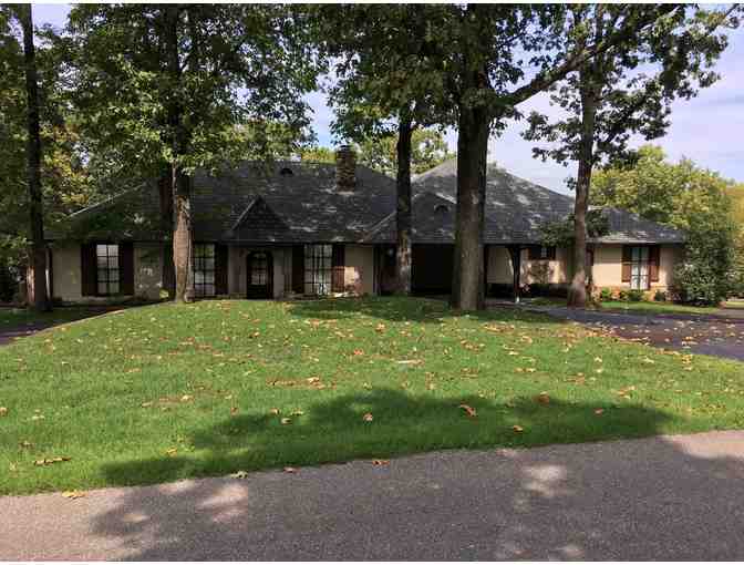 Spend three days and three nights at this beautiful home on Grand Lake. This 5-bedroom, 4 1/2-bath house sleeps 10 adults comfortably and up to 14 with extra beds for the kids.  Located off Duck Creek in Thompson Point, it is an easy drive from Tulsa to this lake escape, about 1 hour 15 minutes. During your stay, you will enjoy a private dock, covered back patio with grill, TV, fireplace and entertaining area, hot tub overlooking the lake, full kitchen and plenty of living space.