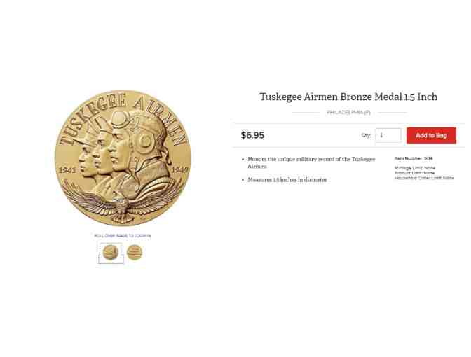The Tuskegee Airmen 1.5 Inch Bronze Medal honors of the Tuskegee Airmen in recognition of their unique military record, which inspired revolutionary reform in the armed forces.