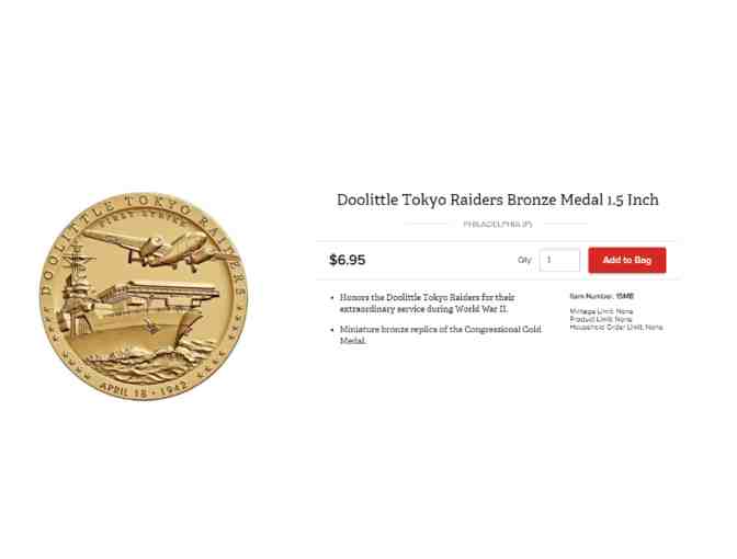 The Doolittle Tokyo Raiders 1.5” Bronze Medal makes a great gift for the World War II history fan or a great addition to any collection.