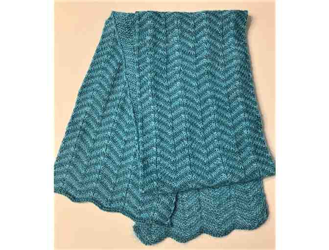 Beautifully handknitted Angora wool scarf. Shades of teal. Really soft and oh so pretty.