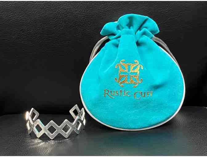 Silver cuff in repeating diamond shapes.