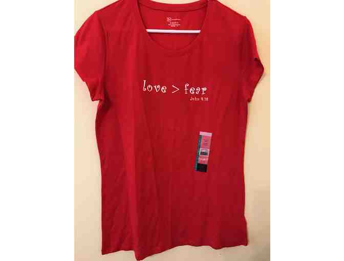 T-shirt: Red - Love > Fear....size XL