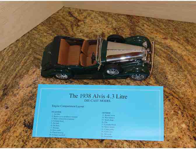 This model represents the 4.3 litre Alvis made by Alvis Ltd, Coventry, England, in 1938. This was one of very few cars of the day capable of actually reaching 100 mph (161 km/h), with an impressive 137 bhp in standard form and up to 170 bhp in race-prepared cars.