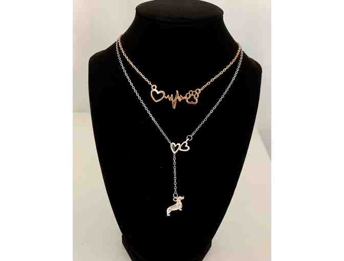 Two Necklaces - 1 Gold-Tone of Heartbeat with a Paw & 1 Silver Tone of Dachshund w/Hearts