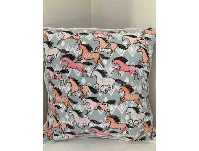 Homemade "Southwest style" running mustang pillow, gray and coral.