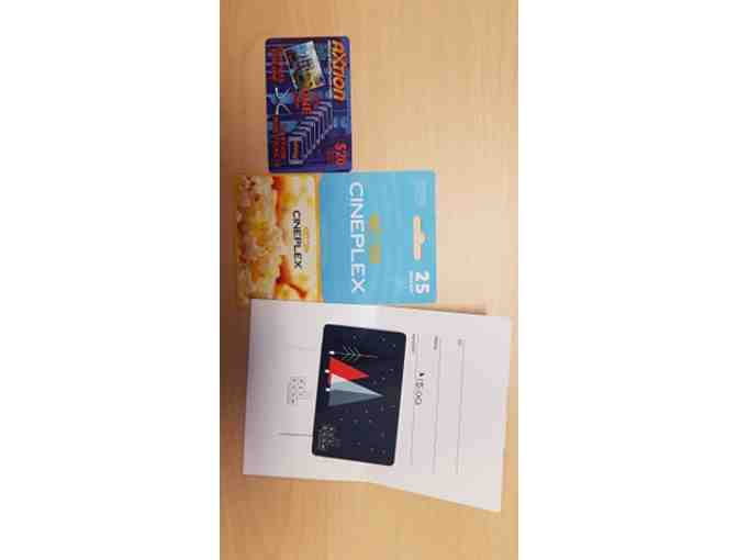 $20 gift card to Axtion, $25 gift card to Cineplex, and $15 gift card to the Rec Room