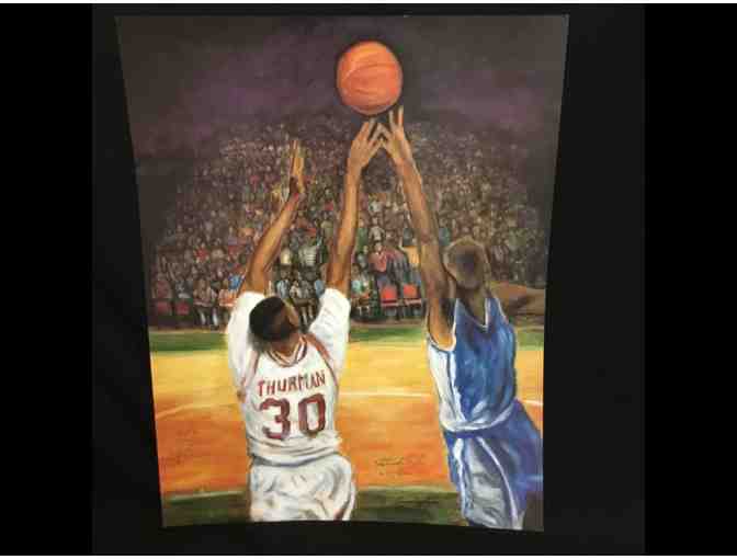 A copy of the painting of Scotty Thurman hitting the game winning shot for the 1994 NCAA Basketball championship. Signed by Scotty Thurman and artist.