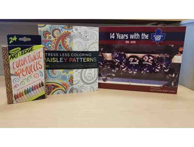 Adult coloring book + colored pencils, and 14 Years with the Toronto Maple Leafs