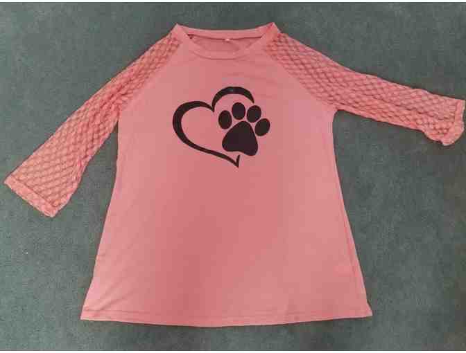 Dressy T-Shirt!! Pink with mesh sleeves - Size Extra Large