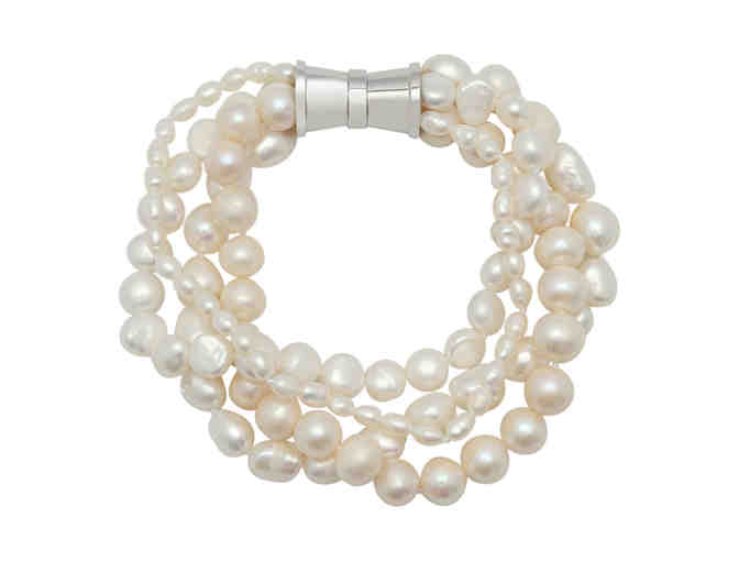 Elegant White 4-Strand Freshwater Cultured Baroque Mix Pearl Bracelet w/ Rhodium-Plated Stainless Magnetic Closure. 7.5".