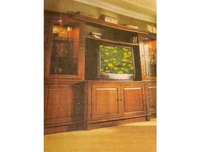 Beautiful Ethan Allen Entertainment Center in cherry stain consists of 3 parts: