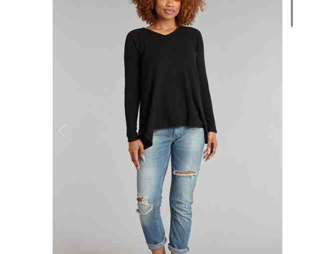 “Say hello to the Tatum, our wear everywhere top. A customer favorite, the Tatum features the softest waffle knit fabric you’ll ever slip into! Perfect for those chilly fall days - keep warm and cozy all season long in this flowy top. This shirt will become your go-to in no time.” It really is an adorable top!