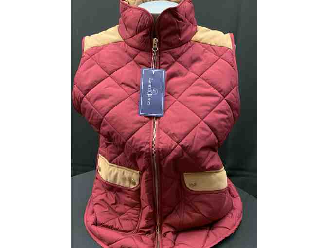 Be ready for fall in this Cranberry Red Lauren James Camden vest with cordory and gold accents.