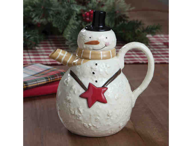 A beautiful and decorative tea kettle in glaze decal for a glassy finish. Made from mineral dolomite for a long lasting piece that can be used year after year.