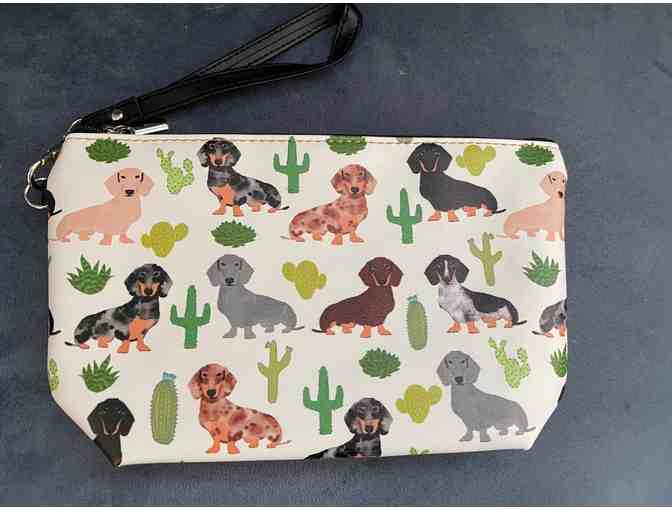 Handy travel purse/cosmetic/toiletry bag with zipper close and wrist strap.