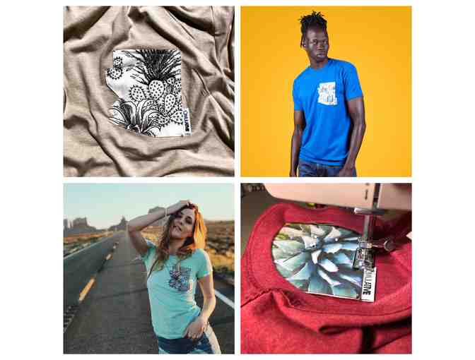 The winning bidder gets a gift certificate to design 4 AZ-shaped Pocket Tees by choosing men’s / women’s, tee color, tee size, and southwest pocket pattern!