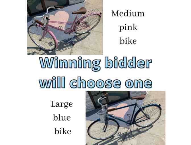 Please note! Winning bidder will receive ONE bike--you choose a large blue OR a medium rose-colored bicycle. Our donor has only donated one bike, so please understand if you lose this auction, we cannot sell you the second bike.