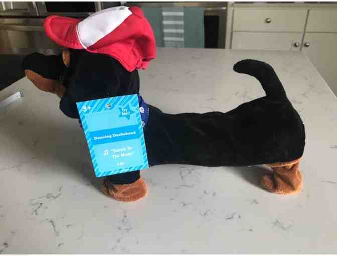 From Gemmy Industries (batteries included), approx 12"x7". He plays "Dance to the Music"!