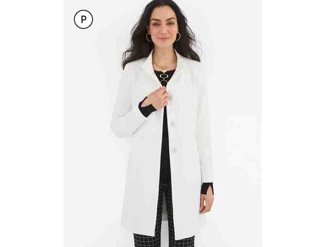 Long, textured and chic. What more could you want in a jacket? This knit jacquard design is easy (and comfy!) stunner from work to the wine bar. Textured knit fabric. Classic fit with long sleeves, concealed button closure, and front pockets.