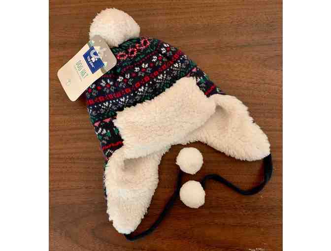You are bidding on a size M/L dog hat.  It is so adorable with the ear flaps!  The shell is 100% acrylic and the lining 100% polyester.  Hand wash in cold water and separately air dry.