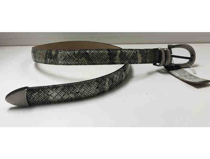 You are bidding on a brand-new grey snakeskin design ladies belt. The belt is 32" long and comes with its original tag still attached.