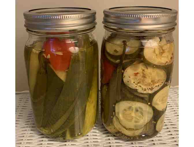 You are bidding on two (2) quart jars of delicious homemade pickles - one Spicy Kosher Dill and one Spicy Bread & Butter. These have habanero and Serrano pepper added to the jars. They are hot but not painfully so!