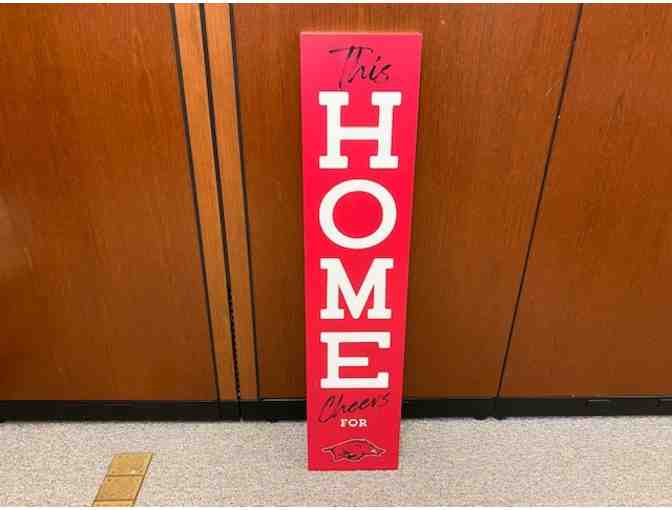 Designed for outdoor use, these large, vertical signs are a great way to greet guests or share your team spirit by placing next to a front door or entryway. Easily prop against a wall or hang from a nail.