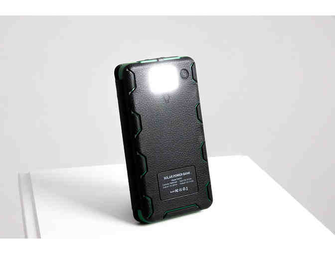 -Outdoor portable 8000 mAh lithium polymer battery pack with foldable, 3.75 watt, super-efficient solar panels.