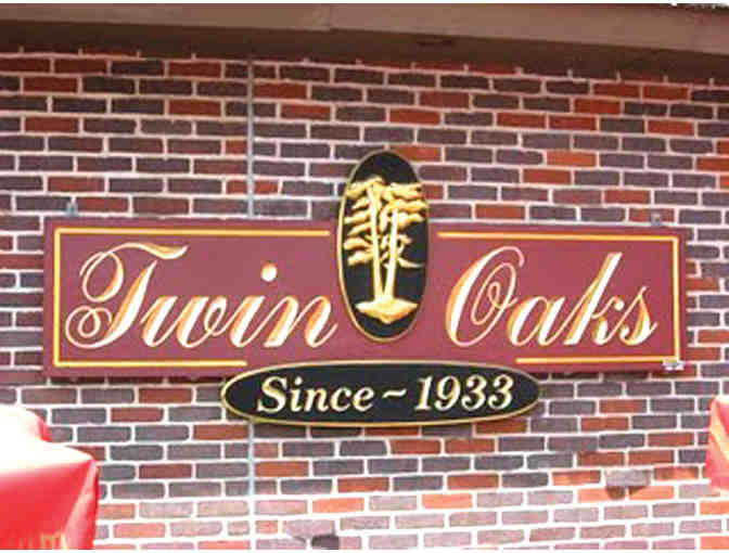 You are bidding on a $25 gift certificate for Twin Oaks Restaurant in Cranston, RI.