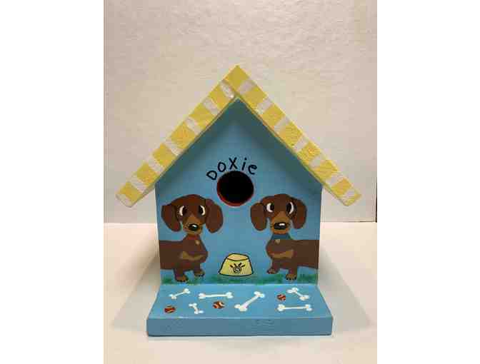 Bird House - Hand Painted Dachshund Blue Bird House with a Cycling Doxie on Back!