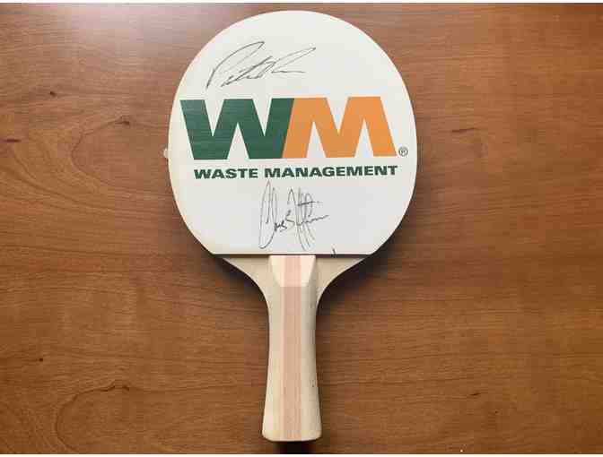 Waste Management ping pong paddle from celebrity event at the Waste Management PGA Tour Event at Phoenix. Autographed by Patrick Reed and Charles Hoffmann.