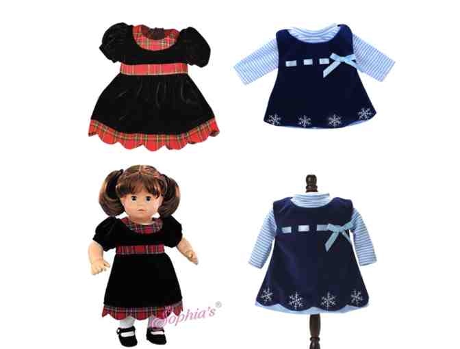 Sophia's 15" - Black Velvet Dress w/ Tartan Plaid Trim and Navy Snowflake Dress