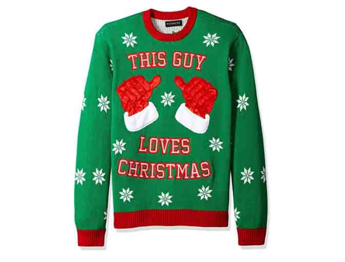 Men's Size Large - Blizzard Bay - Green Ugly Christmas Sweater - "This Guy Thumbs"