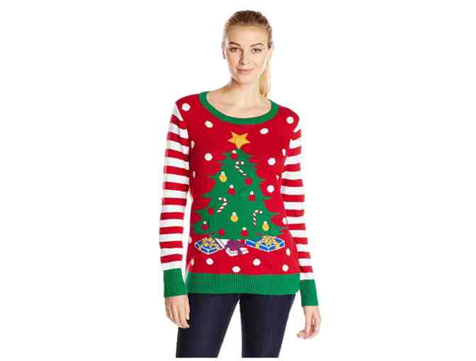 Women's Size Large - Ugly Christmas Sweater with Multi-Colored LED Flashing Lights & Christmas Tree Hat with Ornaments. Be the life of the party!