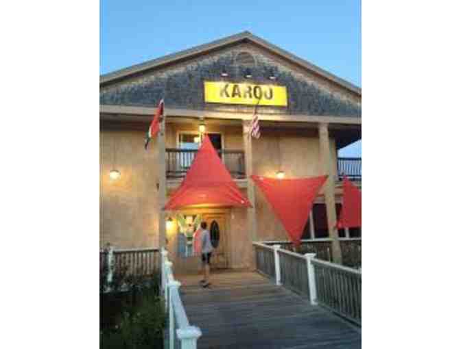 Karoo Restaurant is inspired by the diversity of European, African, and Indian flavors that make up the delicious dishes of Chef Sanette Groenewald’s southern hemisphere homeland, she brought magic from Cape Town to Cape Cod in creating a successful, eco-friendly restaurant with a colorful, friendly dining environment, and delicious food. Karoo’s expansive menu is designed to include vegan, vegetarian, and gluten-free versions of traditional recipes, as well as the original, chicken, beef, and fish based dishes. The food is always fresh and made-to-order and complimented by a creative cocktail menu and good selection of wines and beers. Open for dinner... order curbside pick up, dine inside or outdoors in one of their comfortable patio areas.