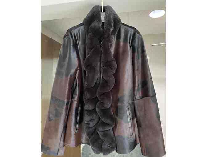 Brown Cowhide Leather Jacket with Rabbit Trim