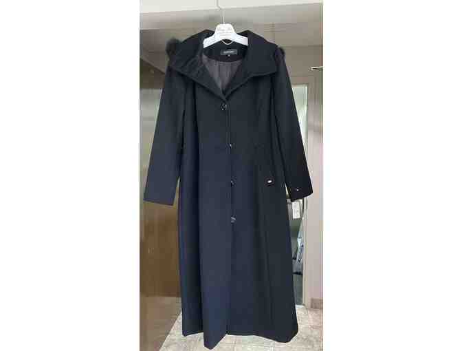 Black Ellen Tracy Wool Blend Coat with detach Fox Trim Hood