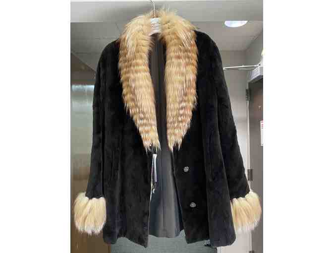 Brown Sheared Section Reversible Mink Stroller with Crystal Fox