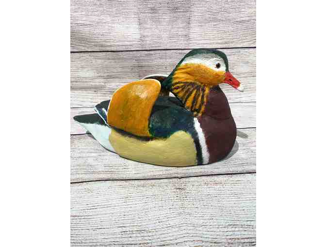 Beautiful, three-dimensional handcarved wood Mandarin Duck carved by local artisan and SFA Alumni Association Executive Director Emeritus, Bob Sitton. You might think it is the real thing! This is the 45th year of Sitton Ducks.
