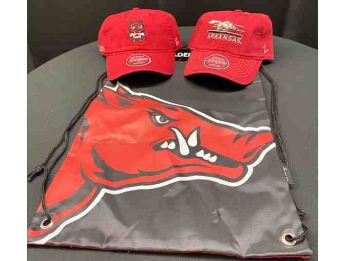 This University of Arkansas Razorback Double Header String Pack is a lightweight bag that is great for carrying a few necessities to the game, an afternoon outing, or wherever! The Double Header String Pack is great because it is reversible and features two Razorback logos. The drawstring closure also functions as shoulder straps. Listing includes Black String Pack Only.