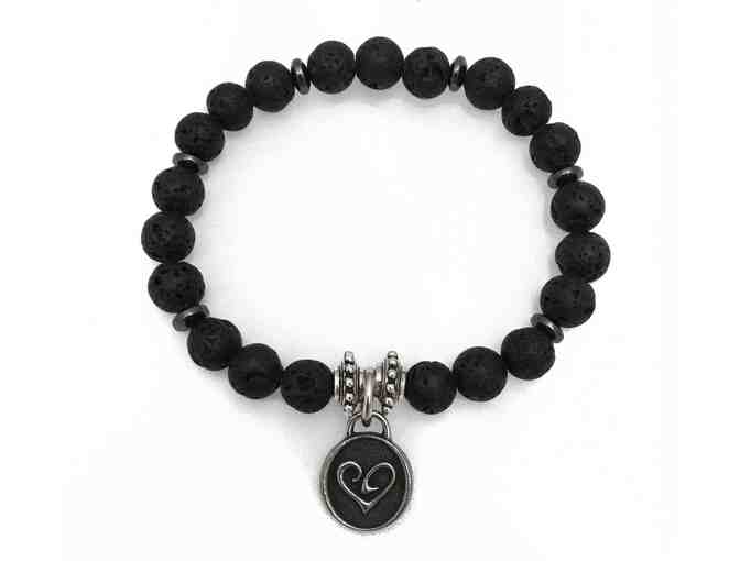 Stretch unisex LAVA bead bracelet with recycled pewter heart charm.
