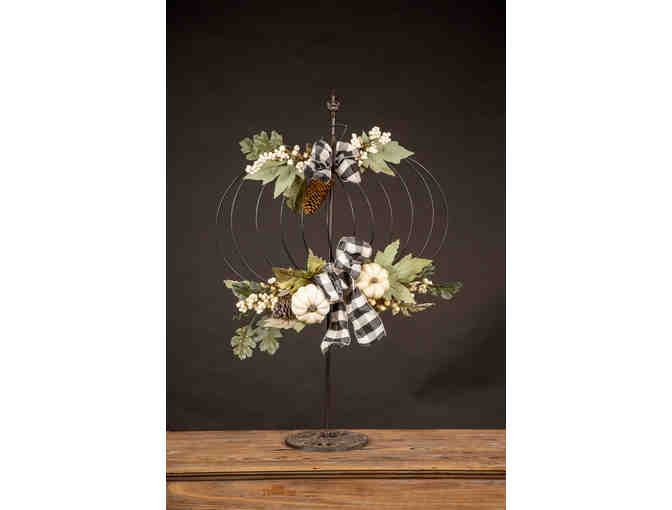 This sweet black metal pumpkin wall hanging decor is perfect for a front door or in a home! Wreath holder not included.