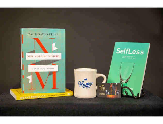 This set would be SO MUCH FUN for anyone to recieve as a gift! Three brand new books: MEANT FOR GOOD by Megan Fate Marshman (signed by Megan), SELFLESS by Megan Fate Marshman (signed by Megan), and NEW MORNING MERCIES by Paul David Tripp. Includes a Hume brand coffee mug AND a $50 Peet's coffee gift card!
