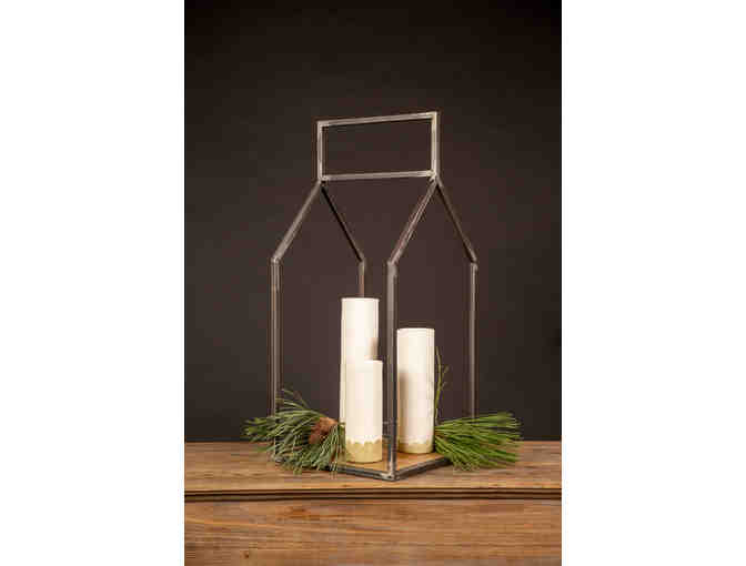 This darling metal house shaped decor stand is perfect for any home!