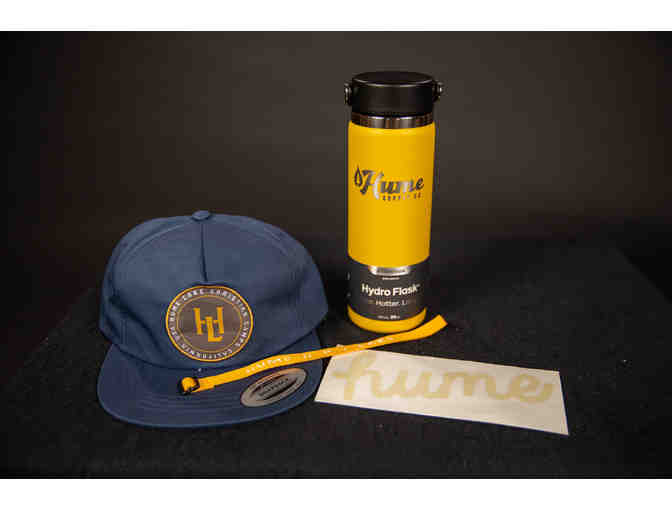 We are calling this gift set "Hume for the WIN"! Set includes: Yellow Hume branded Hydro Flask, Blue Hume Lake Christian Camps hat, yellow Hume sticker, and yellow Hume bracelet