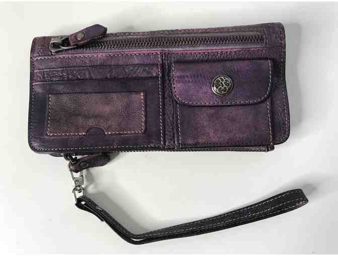 7.5in long. Has a carry strap and lots of compartments. Brand new. Tres chic.