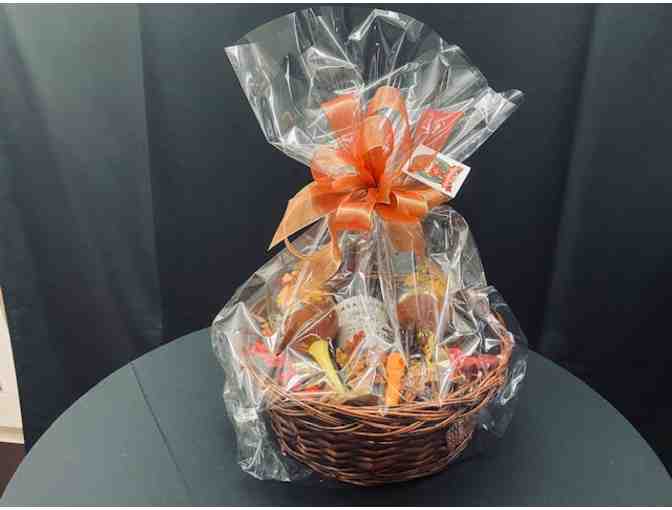 This fall themed basket includes a bottle of Casa Smith wine, two wine glasses, and wine accessories!