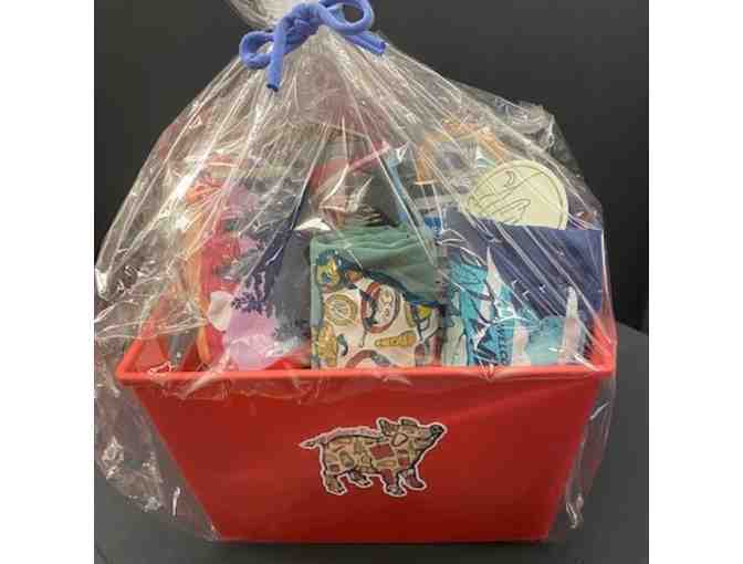 This basket includes an array of tshirts (size Large) and stickers with Southern Trend's classic pig designs on them.