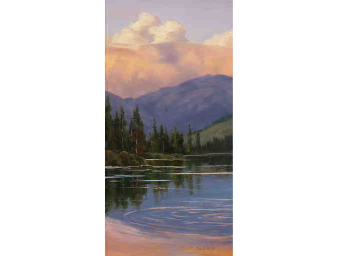 This gorgeous, Original painting is oil on Linen. Sierra Lake at Sunset represents one of the best parts of Hume- the beautiful evenings and colors on the mountain at sunset! Painted by award winning national artist, Sheryl Knight, this piece is 24 x 12 oil on linen in a gold frame www.sherylknight.com. Retail for this item is $1600.